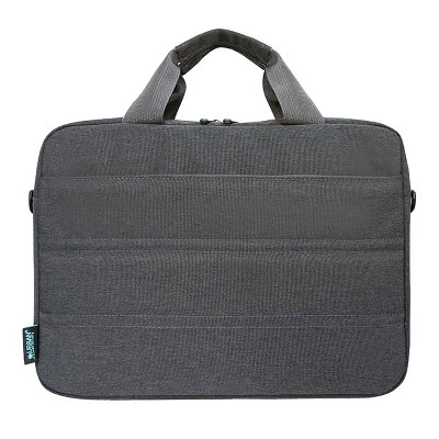 The GREENEE Environmentally Friendly Laptop Computer Case from Urban Factory fits 17.3-in. laptops. This case has a compartment for a laptop computer up to 17.3 in. which is secured by a strap. You can carry all your accessories and your documents in the dedicated front pocket. The strap at the back of the bag will allow you to attach your bag to the telescopic arm of your suitcase and travel in complete safety. It’s mostly made of r-PET fabric (fabric made of recycled plastic).