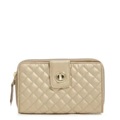 The Turnlock Wallet has both organization and style. Multiple compartments and pockets keep cash, cards and everything else neat. Details: Pearlized nylon. Provides RFID protection for credit and debit cards. Exterior features one zip coin pocket. Interior features 12 card slips, three bill slips and two ID windows. Turnlock and zip closures. Care Tips: Spot clean with mild detergent and a soft, damp cloth, rinse thoroughly; lay flat to dry