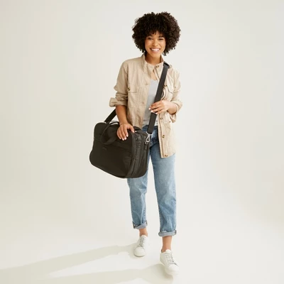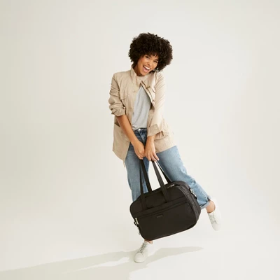 Pack up (and find things later) with ease thanks to this innovative style — the sides unzip for ultimate level of organization! Details: Bag unzips to lie flat for packing. Exterior features a zip pocket and a zip compartment. Zip trolley sleeve. Front compartment features three elastic mesh slip pockets. Main compartment features two mesh zip compartments. Care Tips: Spot clean with mild detergent and a soft, damp cloth, rinse thoroughly; lay flat to dry