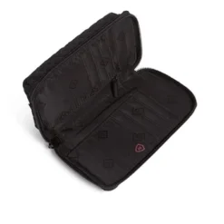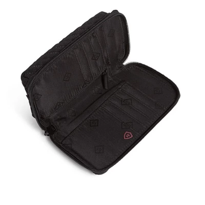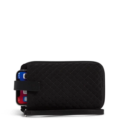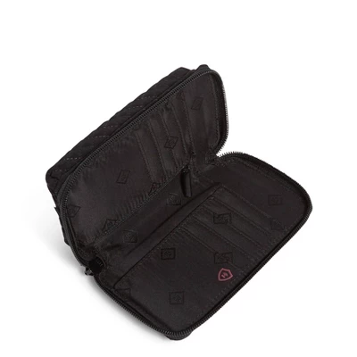 Ever have one of those days when you aren’t sure if you need a wallet or a wristlet? You won’t have to think about it when you carry the RFID Smartphone Wristlet. It organizes all of the things you carry in your wallet and also holds a phone. Details: Microfiber is lightweight, solid-colored polyester. Provides RFID protection for credit and debit cards. ID is securely snapped in place, but accessible from the outside of the wristlet. Phone slip pocket and D-ring on exterior. Eight credit card slip pockets, one slip pocket, one bill pocket and an ID window. Pin snap and zip closures. Care Tips: Place in mesh bag before laundering; machine wash cold, gentle cycle, only non-chlorine bleach when needed; lay flat to dry
